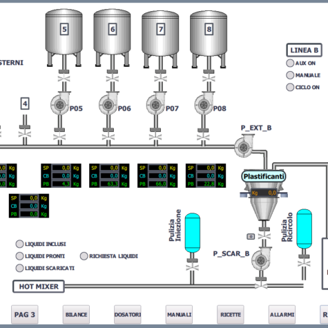 Sviluppato su piattaforma PLC B&R o Siemens, Il sistema di supervisione Plantech-Cst è la soluzione innovativa per la gestione integrale di linee di dosaggio. Equipaggiato con un’interfaccia operatore che permette la connessione con smartphones e/o tablets per garantire all’utilizzatore la possibilità di avere sempre sotto controllo la produzione aziendale.