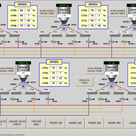 PLANTECH-CST è in grado di fornire sistemi completi per il controllo e la supervisione di linee di produzione chiavi in mano, compreso il monitoraggio dello stoccaggio, trasporto in pressione e vuoto, trasporto in fase densa, sistemi di dosaggio a batch e processi di automazione industriale più in generale. Il sistema di supervisione Plantech è progettato con un alto livello di modularità adattabile ad ogni tipo di esigenza del cliente.