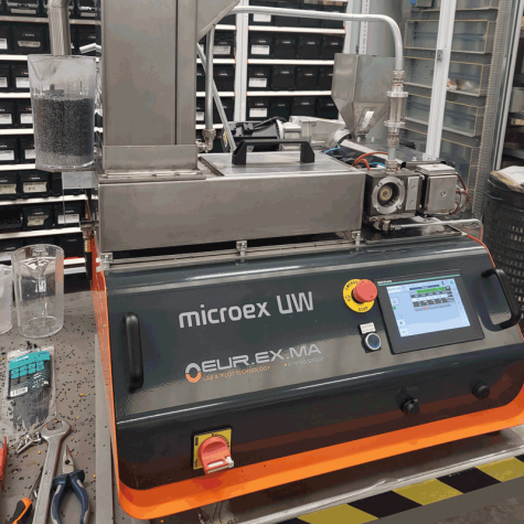 - The Microex extruder of the Microex UW, with a special conical screw able to replicate the efficiency of bigger-size screws, is capable to process any kind of polymeric materials.